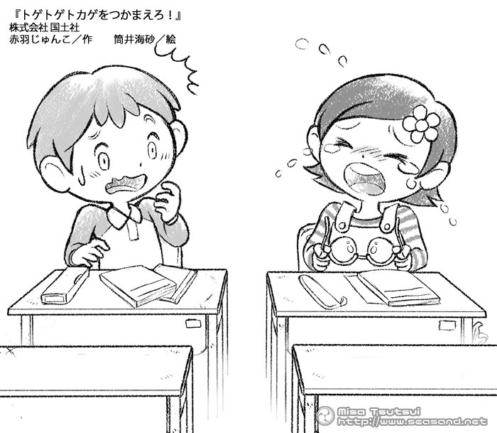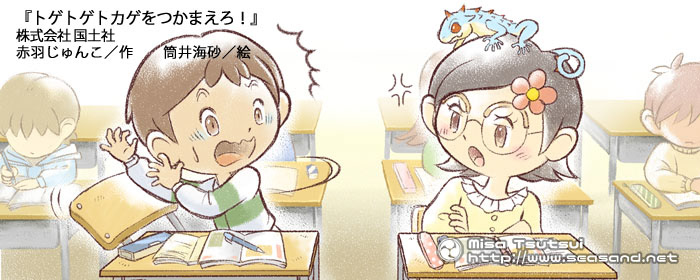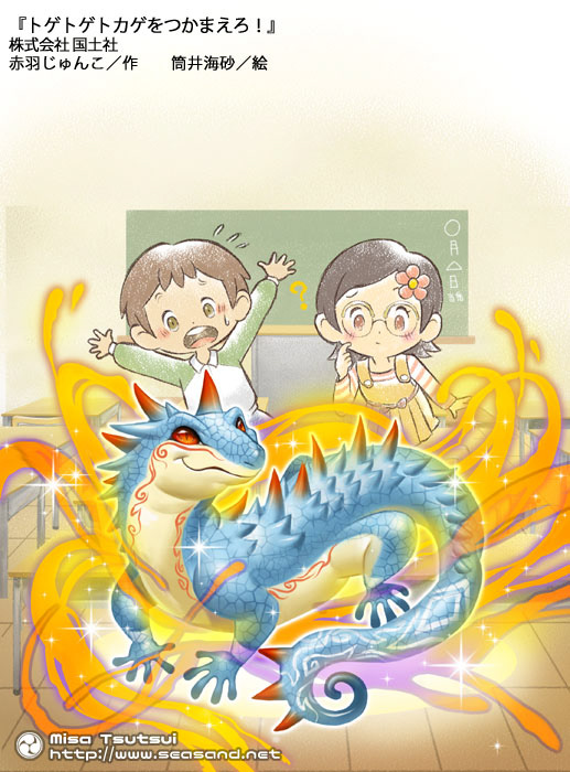 (株)国土社さまより発売の児童小説「トゲトゲトカゲをつかまえろ!」の装丁を担当しました。モノクロカラー含め30点ほどのイラストを担当しています。